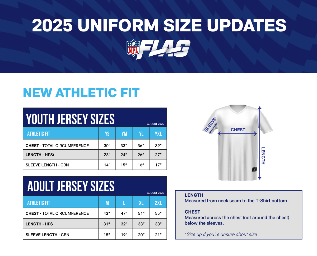 All newly produced NFL FLAG jerseys, across all 32 NFL clubs, now feature: